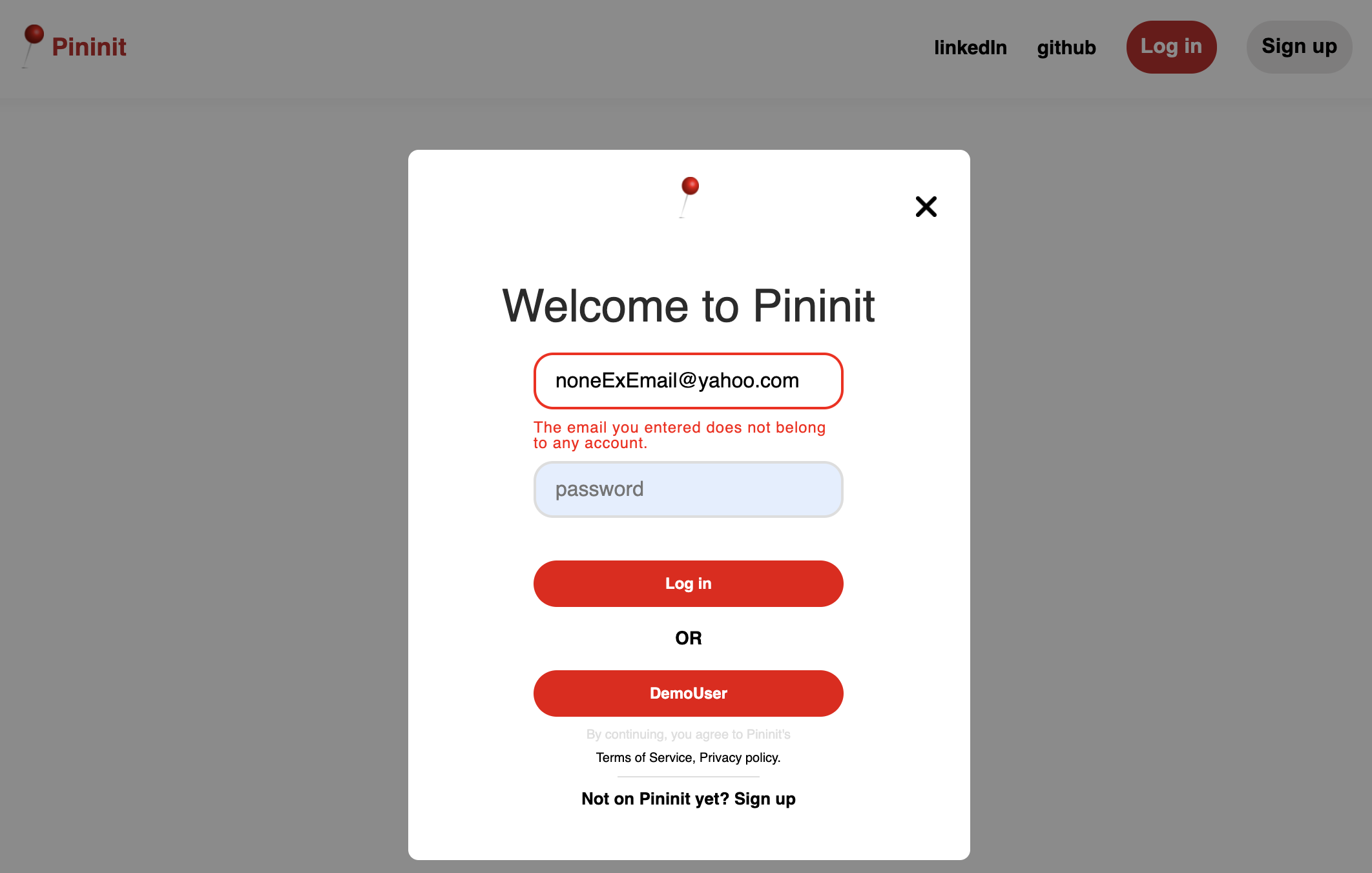 PinInit is a clone of the common social media platform Pinterest, where users create and share ideas organized in boards.